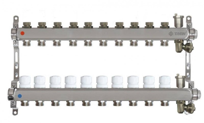 Коллекторная группа (нерж) 1x3/4x10 вых. (рег.клапаны, авт. воздух-к, дренаж. клапан,  рег.кронштейны) TAEN